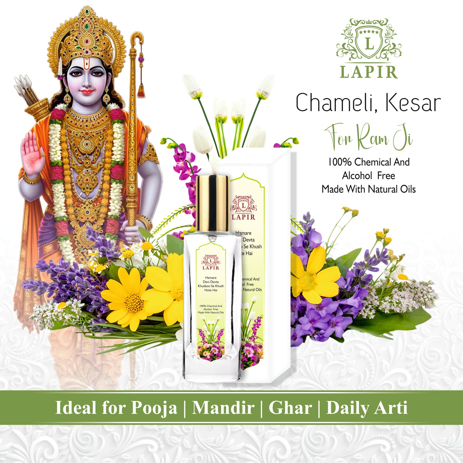 Lapir Ram Ji Natural Floral Pooja Perfume | Alcohol & Chemical Free Mandir Fragrance