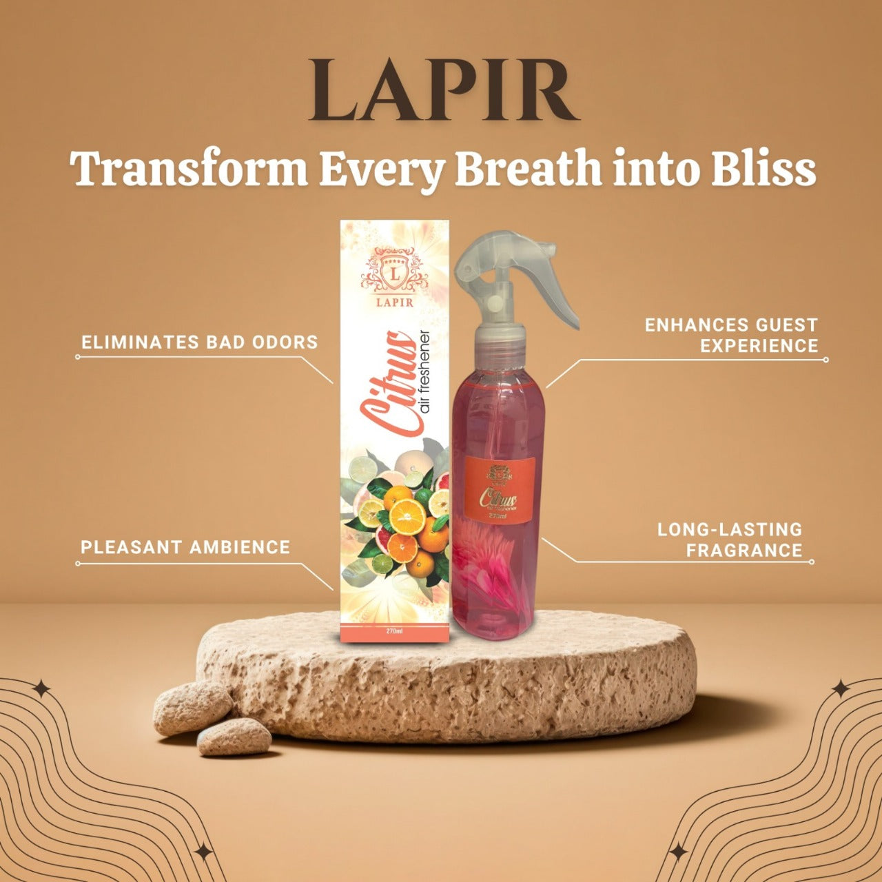 LAPIR Room Freshener Spray 270 ML | Long-Lasting Air Freshener for Home Office Car | Instant Odor Eliminator & Fragrance Mist (Citrus)