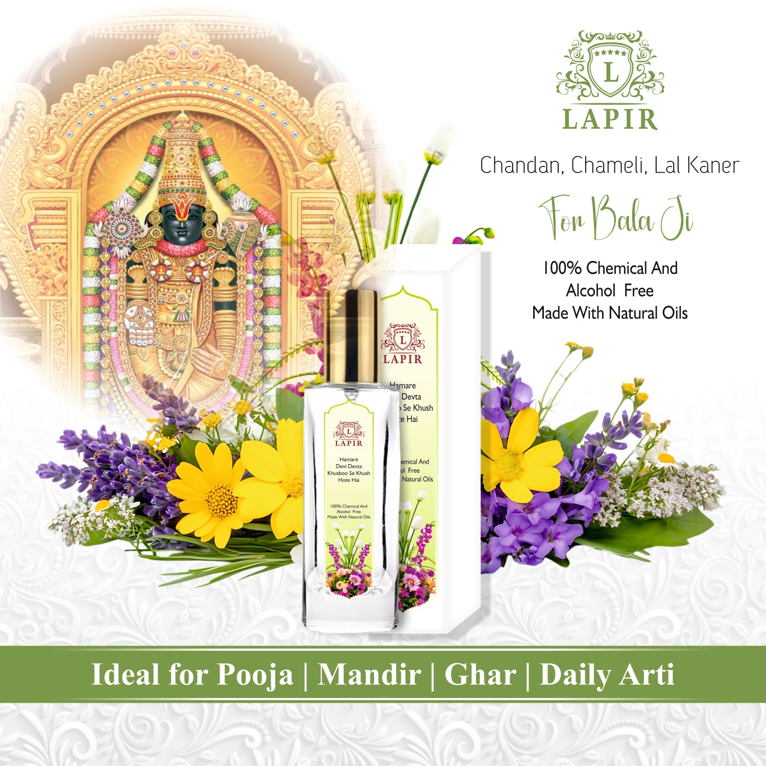 Lapir Bala Ji Natural Floral Pooja Perfume | Alcohol & Chemical Free Mandir Fragrance